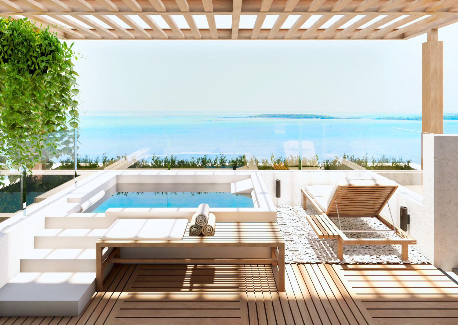 From your private penthouse jacuzzi, enjoy a breathtaking view of the Melville lagoon and the surrounding islets. Disconnect from the world and immerse yourself in the soothing sounds of the ocean.