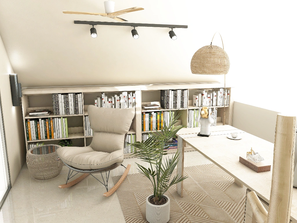 A favourite spot, the attic space offers an expansive view of the sea with a serene and inspiring ambience for productivity or leisure. Soak yourself in tranquility while engaging in work or simply unwinding.